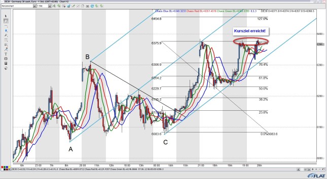 Ein erstes Kursziel bzw. Teilausstieg wäre dann bei der mittleren Linie des AP bei ca. 6340 Punkten.