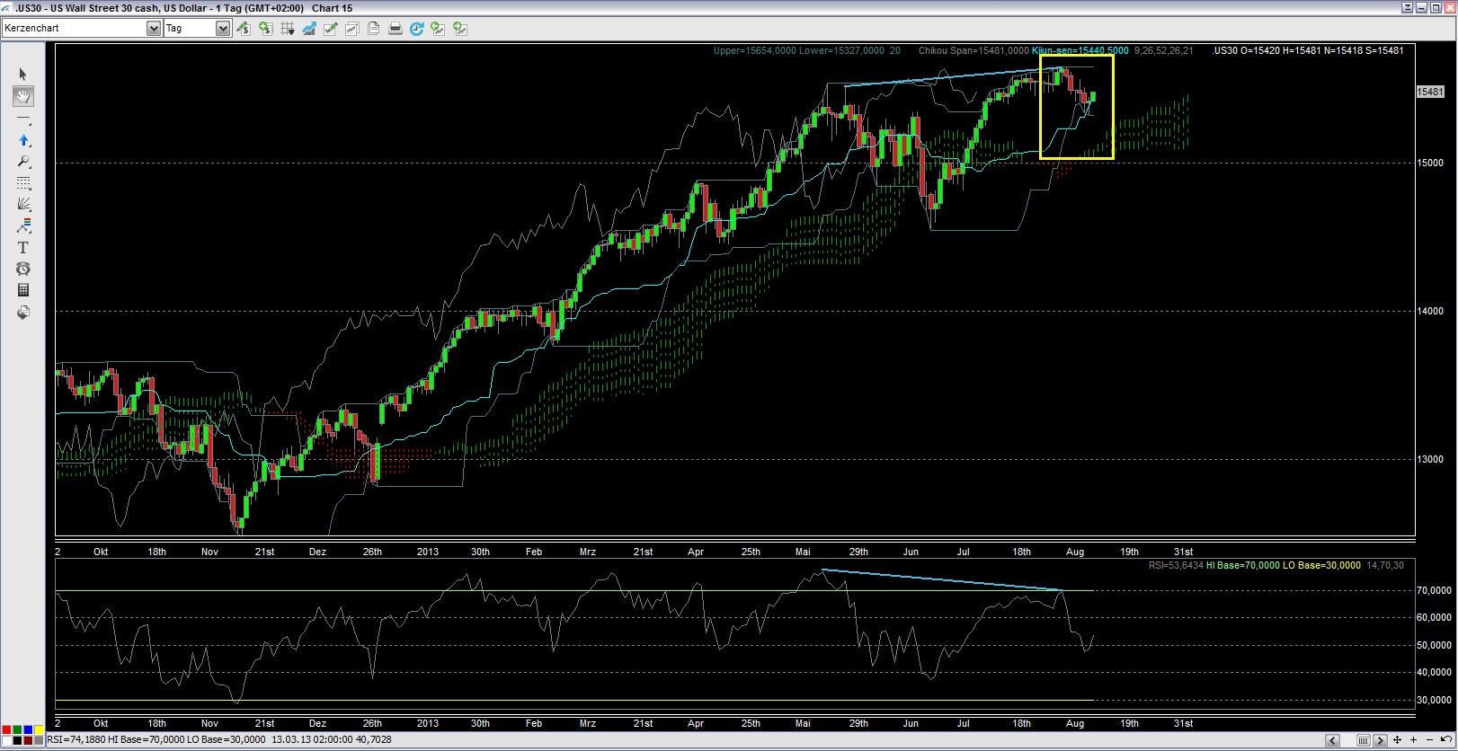 Stop Loss nachgezogen auf Höhe Kijun Sen bei 15464.