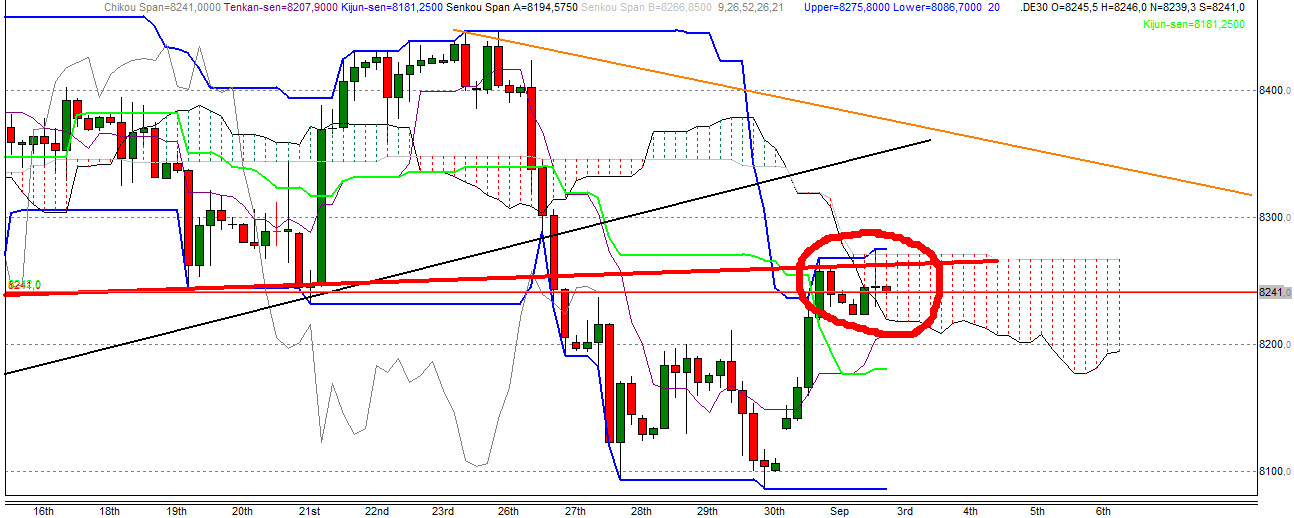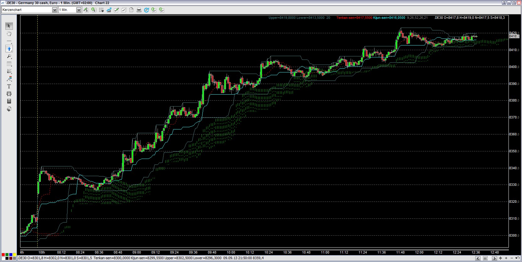 Seit Eröffnung heute morgen um 08:00 Uhr befindet sich der DAX oberhalb der Ichimoku-Wolke.