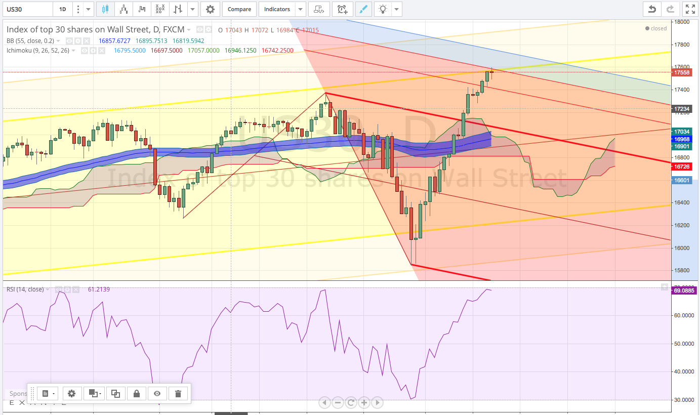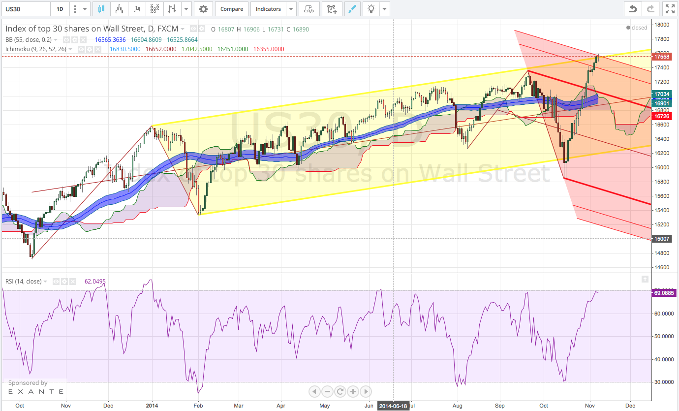 Sehen wir bald fallende Kurse? Aktuell gibt es Hinweise, dass die Kurse fallen könnten. Es laufen zwei Pitchforks zusammen und es gibt eine Divergenz bei RSI und Kurs.