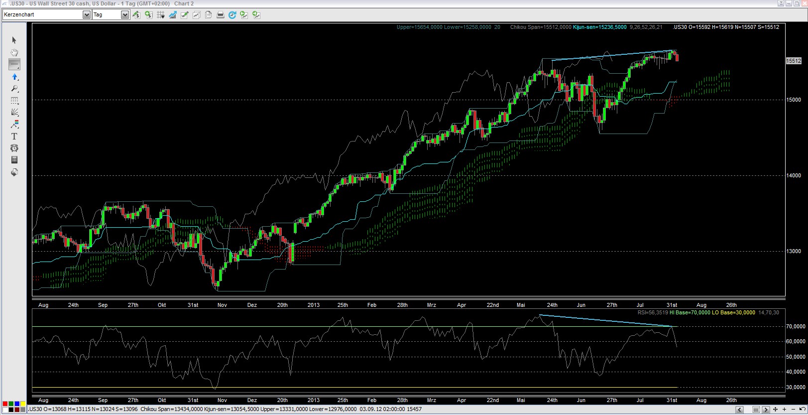 Dow Jones 31.07.2013 – Divergenz!!