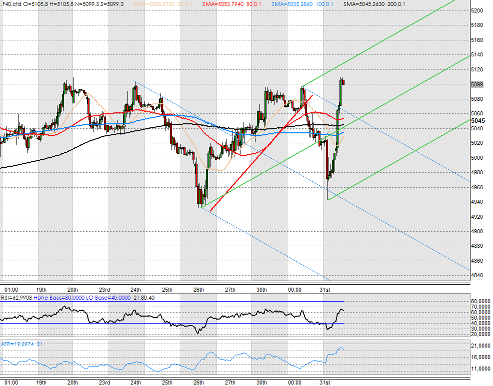 Genau wie eingezeichnet entwickelte sich der S&P 500 positiv und drehte an der Mittellinie.